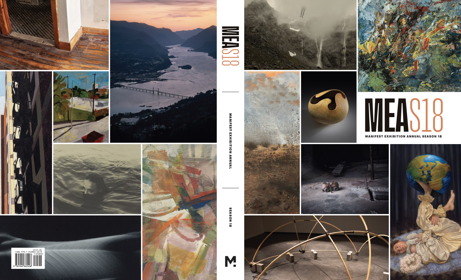 Season 18 saw the production of 38 separate exhibitions. Among them are included our fifth presentation of the PAINTED and AQUACHROME painting biennials, our third Five-Themes Project, and 10 solo exhibitions, rounding out Manifest’s customary balance between solo shows, annual projects, and unique thematic group shows. It is also worth noting that this book includes works by student artists representing 32 different academic institutions. Their inclusion emphasizes Manifest’s ongoing connection and commitment to our founding in 2004, when students and their teachers came together to establish a Switzerland-like organization—a nexus where their common ground of higher pursuit of mastery in the visual arts could be examined outside the confines of their own academic programs.